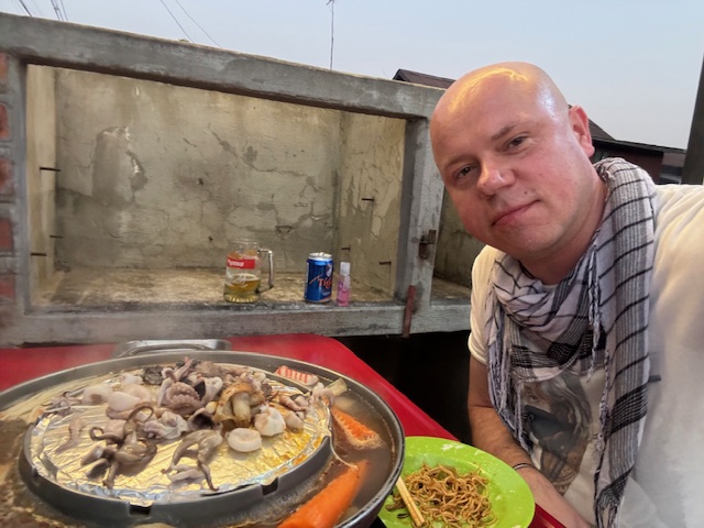 Zakwaterowano mnie w kameralnym, uroczym domku hotelowym schowanym w ogrodzie. Miałem wrażenie, jakbym nocował w środku lasu – cisza, zapach palm, wilgotnej ziemi, robactwo, gady i płazy gdzieś w tle. Byłem jedynym hotelowym gościem, co miało swój klimat, ale też konsekwencje: bar na dachu zamknięty, restauracja nieczynna. Wieczorem w domku zrobiło się przenikliwie zimno, a prysznic w zimnej wodzie skutecznie mnie otrzeźwił. Stałem pod tym lodowatym strumieniem i myślałem, jak bardzo doceniamy pewne rzeczy dopiero wtedy, gdy ich brakuje i jak dobrze mamy na co dzień w Polsce.