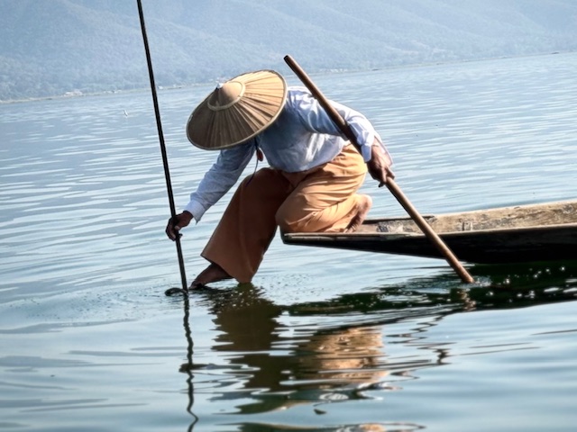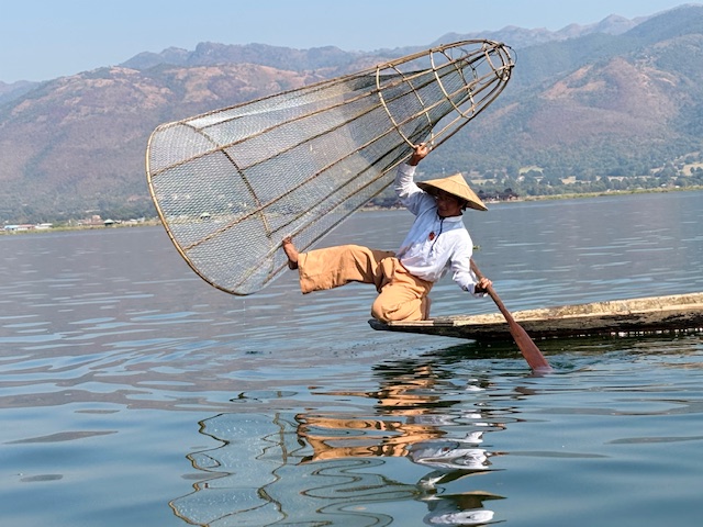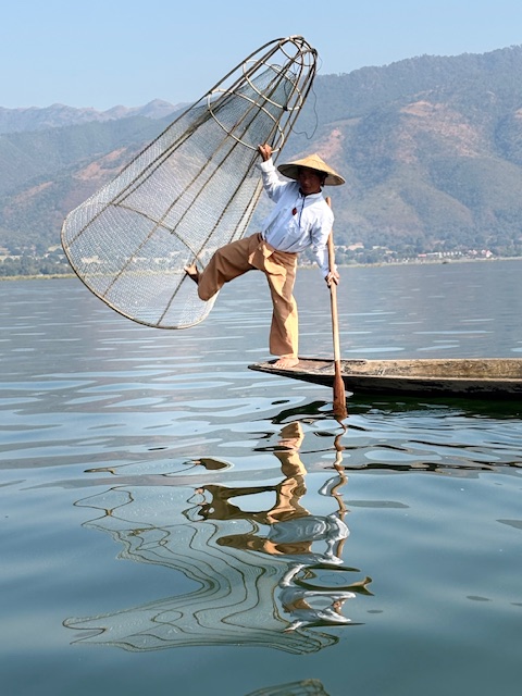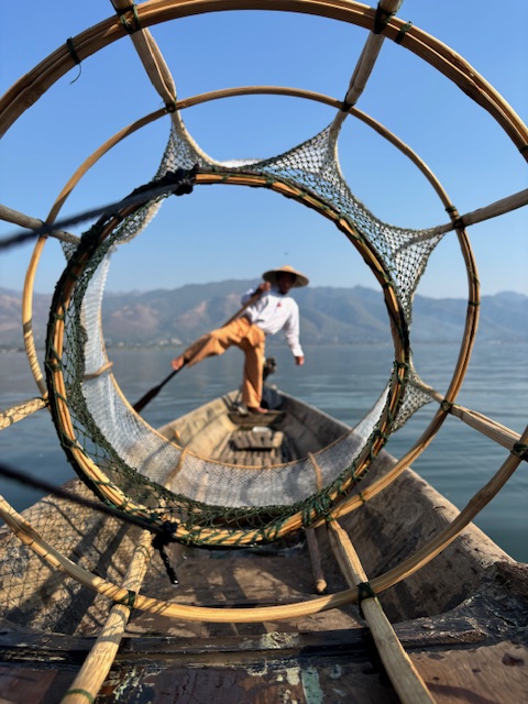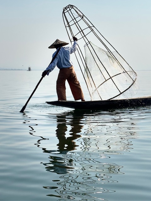 Wypatrywałem rybaków balansujących na jednej nodze tej charakterystycznej, niemal akrobatycznej pozy, którą znałem ze zdjęć. Jedna noga opleciona wokół wiosła, druga stabilnie oparta na łodzi, ręce zajęte siecią, wzrok wbity w wodę. Okazało się jednak, że ci „prawdziwi” rybacy to już rzadkość. Moja przewodniczka uśmiechnęła się i po godzinie zorganizowała jednego z lokalnych mężczyzn, który zapozował mi do zdjęć. Świat się zmienia, czasem nawet tradycja dostosowuje się do obiektywu aparatu.