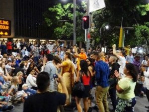 Kolejny wieczór K zabrała mnie na kolację to Tajwańczyka gdzie smakowicie wyglądające dim sumy i sałatkę z meduzy jedliśmy w towarzystwie gigantycznego robalo-chrabąszcza, który zakamuflował się między pojemnikami z przyprawami i pałeczkami raz po raz ukazując się nam w całej swej odrażającej okazałości odbierając resztki apetytu. Biedak ostatecznie źle skończył rozdeptany klapkiem przez przypadkowo przechodzącą tamtędy skośnooką.