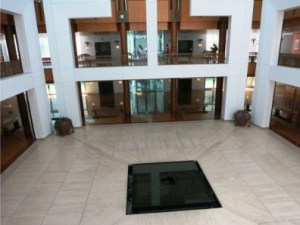 W zgodzie z ideą miasta w naturze, budynek przykryty został warstwą ziemi z nienagannie utrzymanym trawnikiem. Zielony dach obsiano fantastycznie zieloną trawą, wymagającą nieustannego podlewania, a woda jest ponoć towarem deficytowym w tym kraju.
