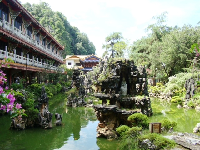 250km za Kuala znajduje się Ipoh stolica stanu Perak i główny ośrodek wydobycia cyny. Przewodnik, który mnie tam zawiózł zaprosił mnie na lunch do lokalnej jadłodajni. Plastikowe brudne stoliki, byle jak rozstawione na wąskim chodniku, dziwny zapach smrodek unoszący się z kuchni, chyboczące się krzesełka, lichy dach, zardzewiałe garnki, plastikowe sztućce, talerze wyparzane we wrzątku w połamanym wiadrze, ludzie z nizin i szczerbaty kucharz – próbowałem ukryć zakłopotanie, ale gdy jedzenie wylądowało na stole było za późno żeby się wycofać. Każdy kęs mięsa maczany w kolorowych brejach ledwo przechodził mi przez gardło, nie mówiąc o coca-coli podawanej z kostkami lodu niewiadomego pochodzenia. W teczce nosze ze sobą węgiel leczniczy i buteleczkę whisky, więc po lunchu nie czekając jak rozwinie się sytuacja, zapobiegawczo zaserwowałem sobie większą dawkę…