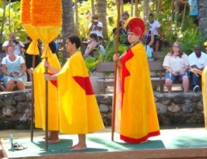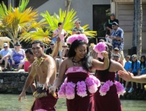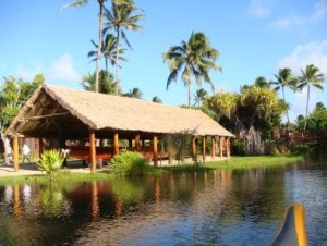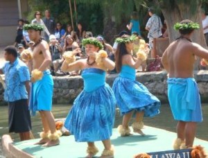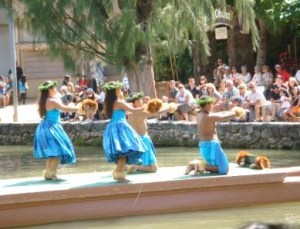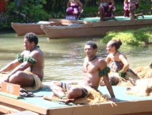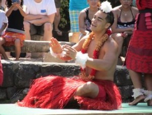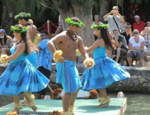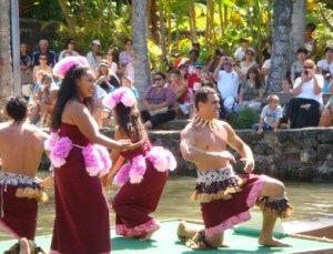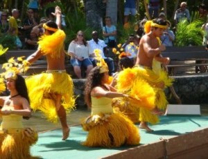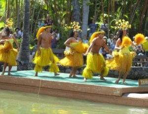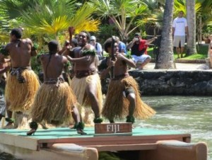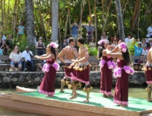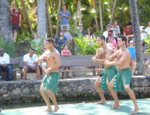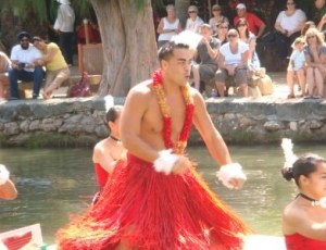 Zaczęło się od tradycyjnej dekoracji naszyjnikami z kwiatów. W wiosce Samoa odbyły się pokazy ekspresowej wspinaczki na palmy kokosowe, otwierania orzecha kokosowego jednym uderzeniem kamienia, ciosania wiórów kokosowych, krzesania ognia przy użyciu dwóch drewienek. W wiosce Fidżi zainteresowanie wzbudziła sypialnia i łoże wodza, który miał prawie tyle żon, co ja kochanków, w Tahiti popisy taneczne a w Tonga klasyczna tongijska kapa z kory drzewnej i owoce noni – panaceum stosowane w medycynie naturalnej, na koniec przejażdżka wieloosobowymi łodziami po rzece przecinającej cały park. Punktem kulminacyjnym była hawajska uczta Luau. Prawdziwe Luau, to nie tylko jedzenie, ale cały entertainment. Melodii z malutkiej ukulele wydającej przyjemne dla ucha brzdąkanie idące w parze z zawodzącym śpiewem nasłuchaliśmy się za wszystkie czasy.