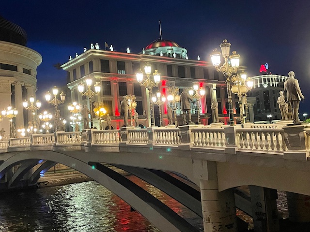 Most Kamienny w Skopje – łączy on dzielnicę bazarową z nową częścią miasta. Pochodzi z czasów osmańskich i jest symbolem Skopje. Mierzy 21 metrów i jest bogato zdobiony. Na ulicach często można spotkać pełno bezdomnych wałęsających się czworonogów, które nie wyglądają na wygłodzone, ale zaczepiają przechodniów.