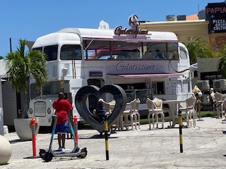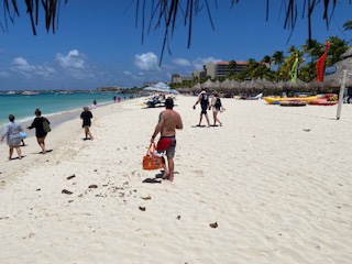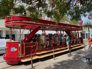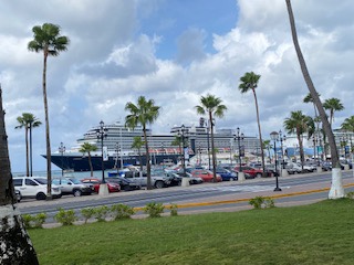 Zaszedłem do również portu, w którym cumują olbrzymie wycieczkowce. „Podarowałem” sobie przejażdżkę Downtown Trolley, czyli tramwajem który kursuje pomiędzy portem i centrum miasta, bo średnia wieku na pokładzie tego pojazdu wynosiła 65 lat. Prócz tego kilka butików światowych luksusowych marek – potencjalny raj dla M. – ale mnie nie pociągają tego rodzaju zakupy. Obszedłem ścisłe centrum kilka razy, porobiłem zdjęcia, spróbowałem lokalnego pastechi – tradycyjnego arubańskiego śniadania, które może być również podawane jako przekąska, składające się ze smażonego w głębokim tłuszczu ciasta w kształcie półksiężyca, wypełnionego różnymi składnikami typu kurczak, wołowina, tuńczyk, warzywa lub ser. Kluczowy składnik jest zwykle łączony z drobno posiekaną cebulą, zieloną papryką, łodygami selera, rodzynkami, kminkiem, gałką muszkatołową i ostrą papryką. Potem takie pastechi smażone na złoty kolor mogłem spotkać na całej wyspie.