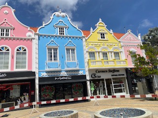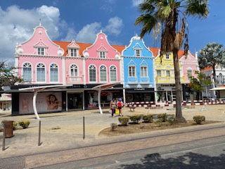 Wybrałem się do Oranjestad – pomarańczowego miasta stolicy wyspy. Miasto naprawdę jest niewielkie: mały plac z kolorowymi kreolskimi domkami, w których znajdują się sklepy, biura oraz restauracje, przy placu nieopodal zlokalizowane są sklepy typu Zara.