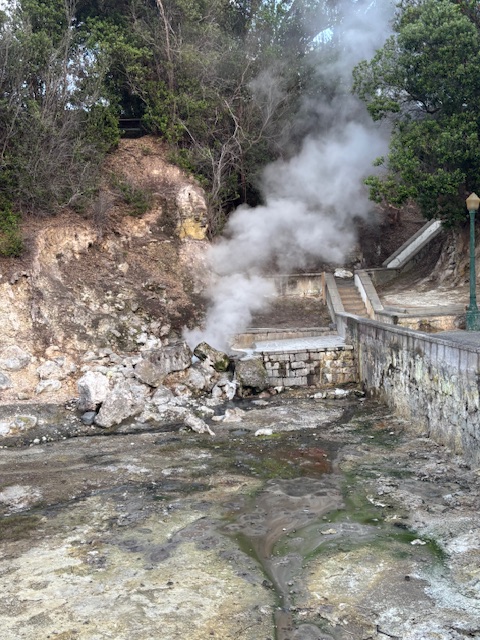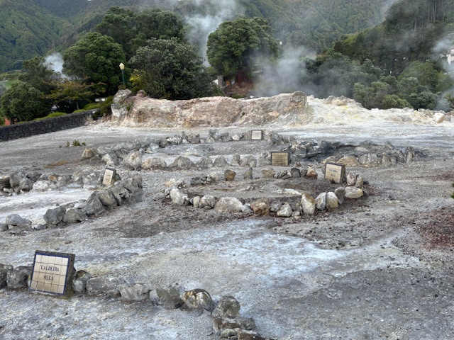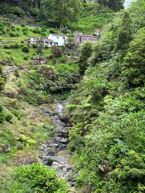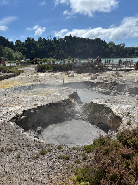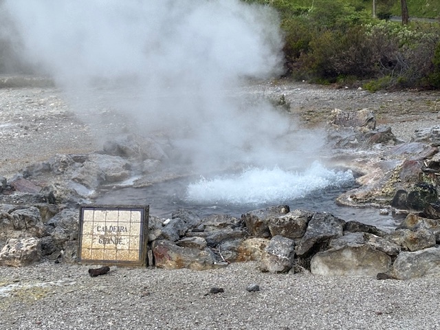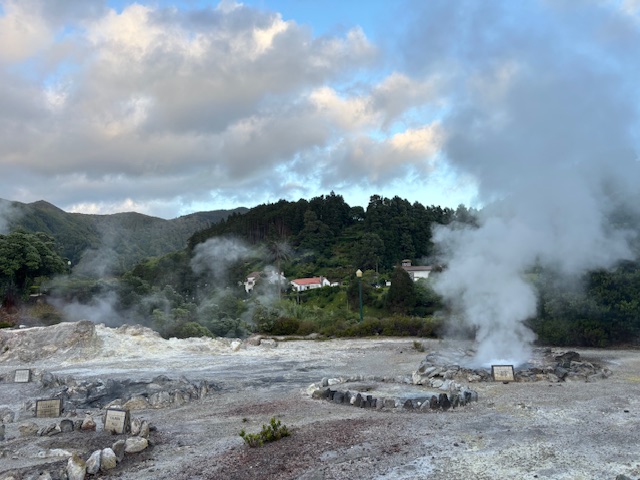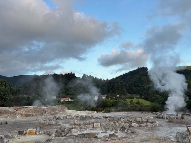 Geotermalne źródła, z których unosiła się gorąca para, spotykaliśmy niemal na każdym kroku — to prawdziwy znak rozpoznawczy Azorów. Cały dzień towarzyszyła nam piękna pogoda: ciepło, ale bez uciążliwego upału, co tylko potęgowało przyjemność z odkrywania wyspy.