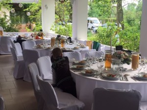Ślub odbył się w pięknym ogrodzie w małym dworku na Opatowicach, goście weselni mieli stoliki porozstawiane na tarasie pod niewielkim zadaszeniem, pierwszy raz w życiu miałem okazję bawić się na weselu na otwartej przestrzeni, obojgu z M. bardzo nam ten pomysł przypadł do gustu. Kto wie może i nasze przyjęcie wesele zorganizujemy w podobnym stylu.