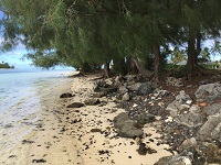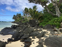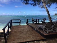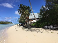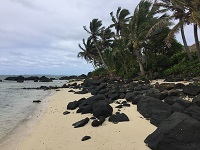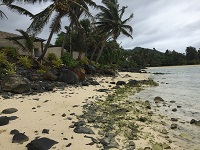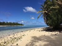Muri Beachcober znajdował się w południowej części Rarotongi, dojazd z lotniska trwał niecałe 20 minut, po drodze mijaliśmy piękne widoki biało piaszczystych plaż, intensywnie soczysto zielonych palm kokosowych, sklepy, restauracje i salony spa. Co kilkadziesiąt metrów spotykało się znaki wskazujące kierunek drogi ewakuacyjnej w przypadku ataku fal tsunami. Podobno tsunami tutaj się nie zdarza dzięki olbrzymiemu, naturalnemu, kilkukilometrowemu uskokowi na dnie otaczającego wyspę oceanu, ale w dzisiejszych czasach nigdy nic nie wiadomo.