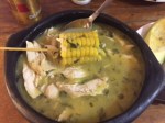 Zapraszam Juliana na lunch. Prowadzi mnie do La Puerta Falsa i proponuje spróbować Ajiaco – tradycyjnej indiańskiej zupy ziemniaczanej na bazie rosołu z kawałkami piersi kurczaka, serwowanej z kawałkiem kukurydzy w środku oraz ryżem i dojrzałym avocado obok. Sam zamawia sobie Tamal, przypominający trochę nasze gołąbki a który spożywają tutaj w czasie świąt.
