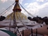 Lunch na dachu hotelu z widokiem na stupę Bodnath. Miasto ma prawie 2000 lat historii, a znaczna jego część wygląda dziś tak, jak prawdopodobnie wyglądała kilkaset lat temu. Setki wąskich uliczek, tysiące sklepików, małych restauracji, pałace, monumentalne stupy, świątynie i małe kapliczki na każdym rogu, przepiękna, egzotyczna architektura, drażniący nozdrza zapach kadzidełek, który roznosi się praktycznie wszędzie, targowiska, odbywające się codziennie religijne ceremonie, odgłosy instrumentów i dzwonki rikszarzy, te wszystkie świadectwa bogatej kultury, sztuki i tradycji Nepalu sprawiają, że po Kathmandu można spacerować godzinami, przez wiele dni i ciągle odkrywać jakieś nowe, fantastyczne miejsca.